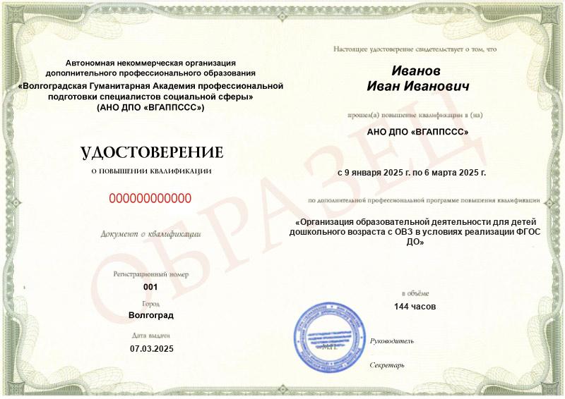 Да, АНО ДПО «ВГАППССС» выдаёт документы о квалификации установленного организацией образца, возможность выдачи образовательной организацией документов установленного образца регламентирована приказом Минобрнауки РФ №499.