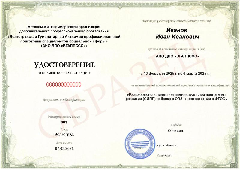 Повысить квалификацию – значит получить новые навыки и компетенции. Курс завершается выдачей официального удостоверения, где указывается ФИО выпускника, название программы, сроки обучения и продолжительность программы.