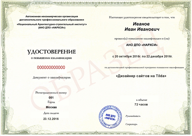 Повысить квалификацию – значит получить новые навыки и компетенции. Курс завершается выдачей официального удостоверения, где указывается ФИО выпускника, название программы, сроки обучения и продолжительность программы.