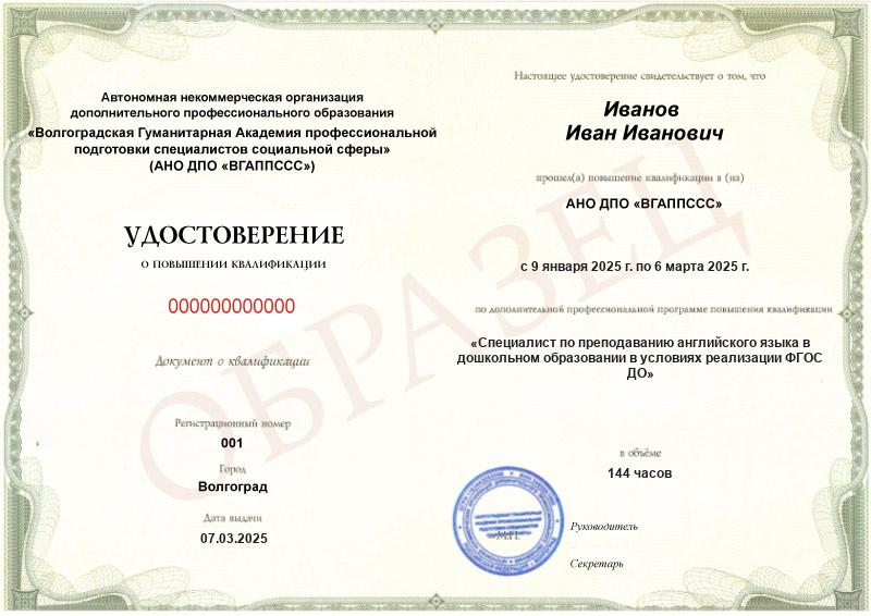 Повысить квалификацию – значит получить новые навыки и компетенции. Курс завершается выдачей официального удостоверения, где указывается ФИО выпускника, название программы, сроки обучения и продолжительность программы.