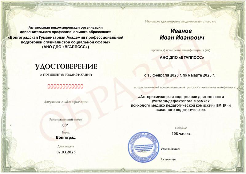Алгоритмизация и содержание деятельности учителя-дефектолога в рамках психолого-медико-педагогической комиссии (ПМПК) и психолого-педагогического консилиума (ППк) (108ч)